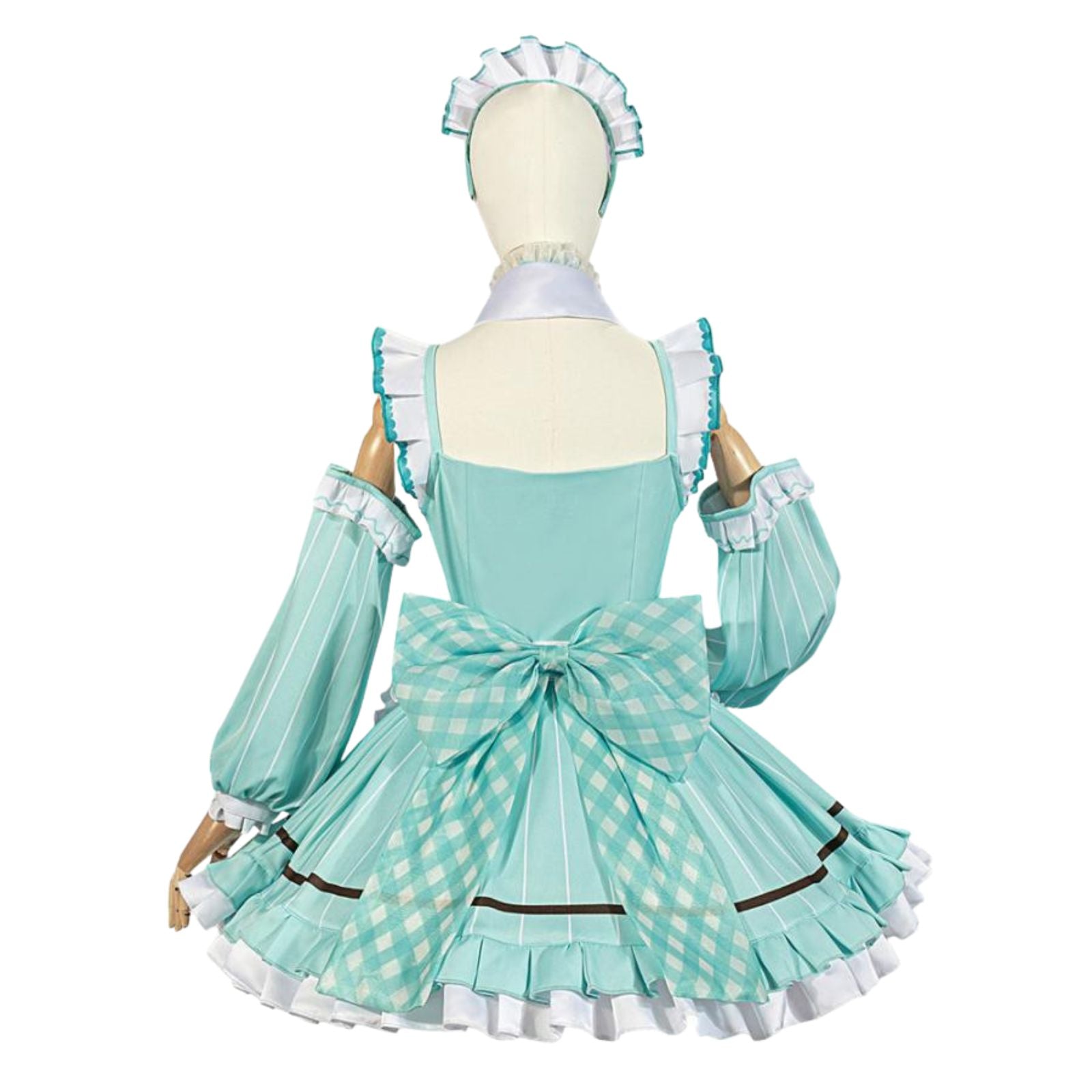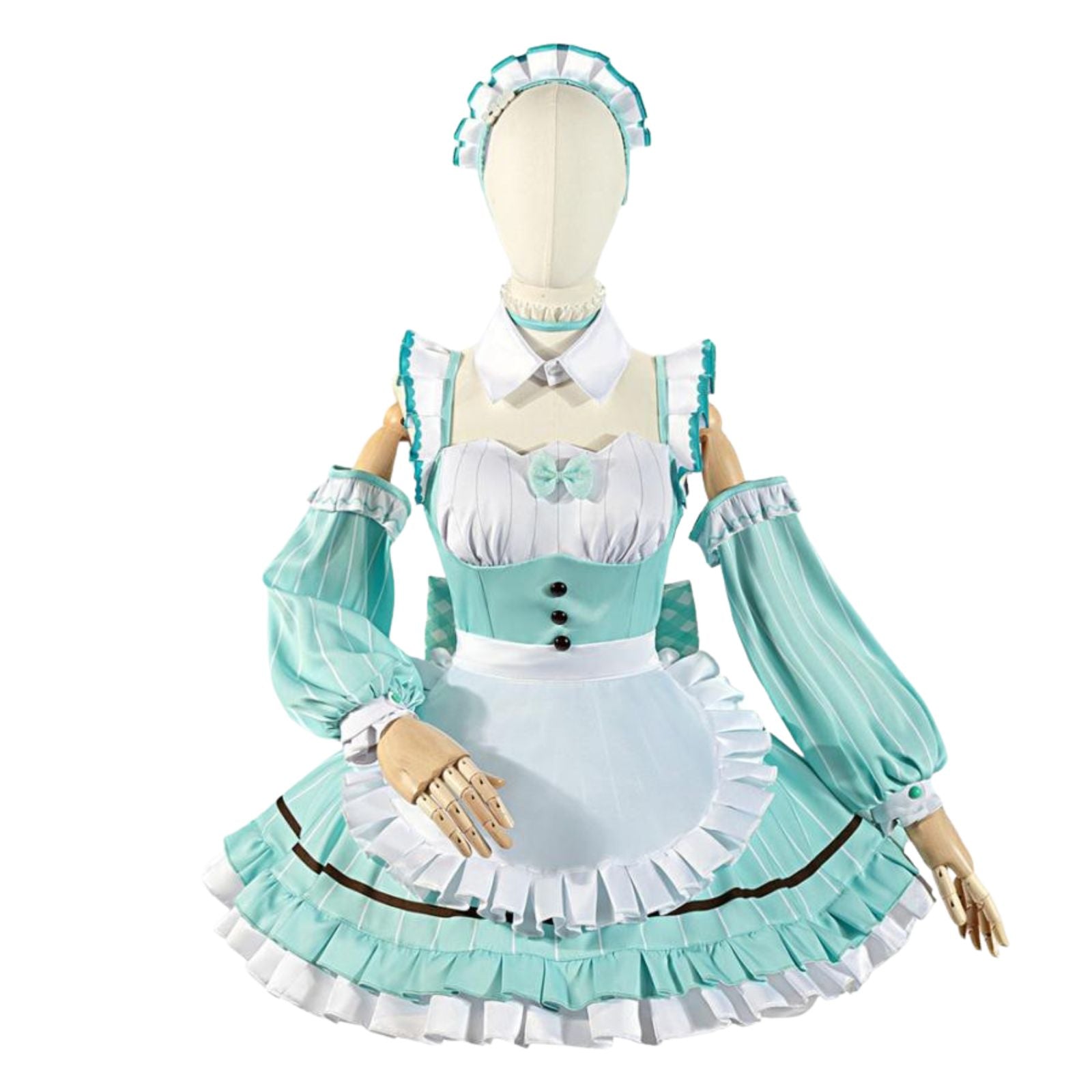 【セット内容】ワンピース+付け袖+つけ襟+チョーカー+エプロン+背面リボン+カチューシャ+ヘアピン+靴下+胸元リボン